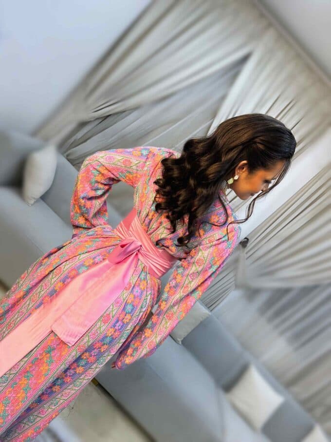 Adorned with hand-applied stone embellishments, the design draws inspiration from classic Moroccan silhouettes, blending intricate craftsmanship with refined sparkle. Whether you’re dressing for Eid, a wedding, or a formal gathering, this caftan offers the perfect combination of comfort, modesty, and glamour.